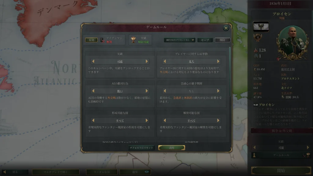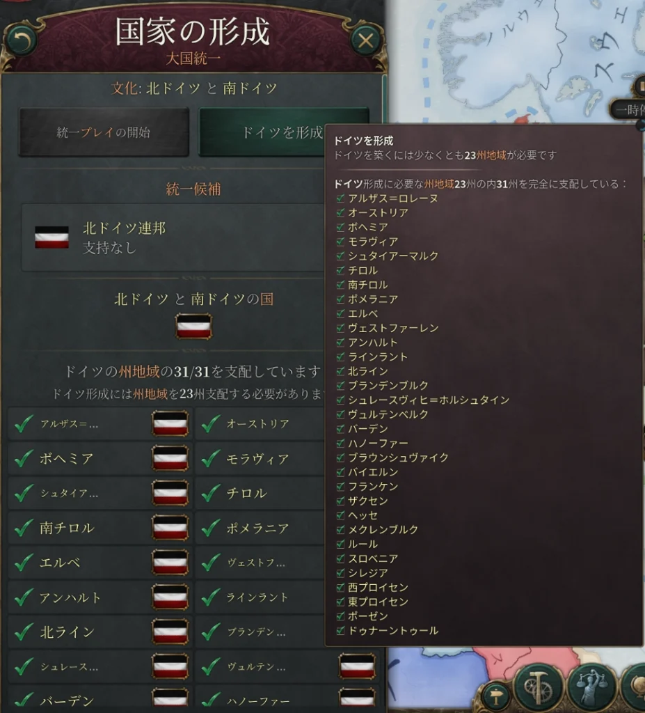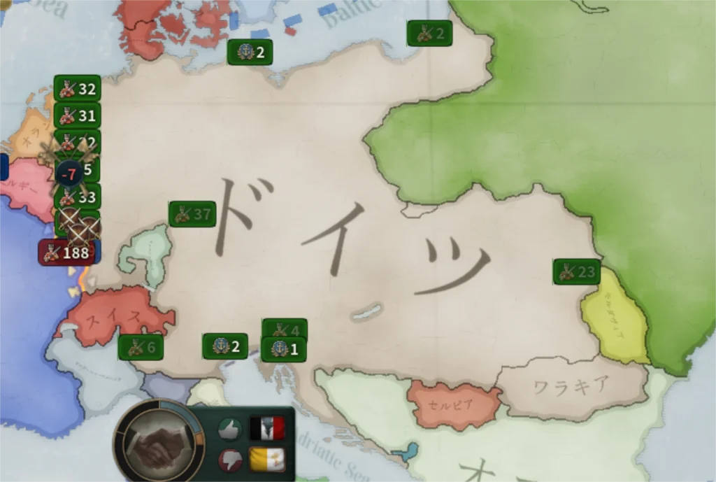 こんな感じになった。ようやく北ドイツ感出てきたな。あとバイエルンとかを併合すればドイツになるわけだけど、それじゃ物足りないよな。