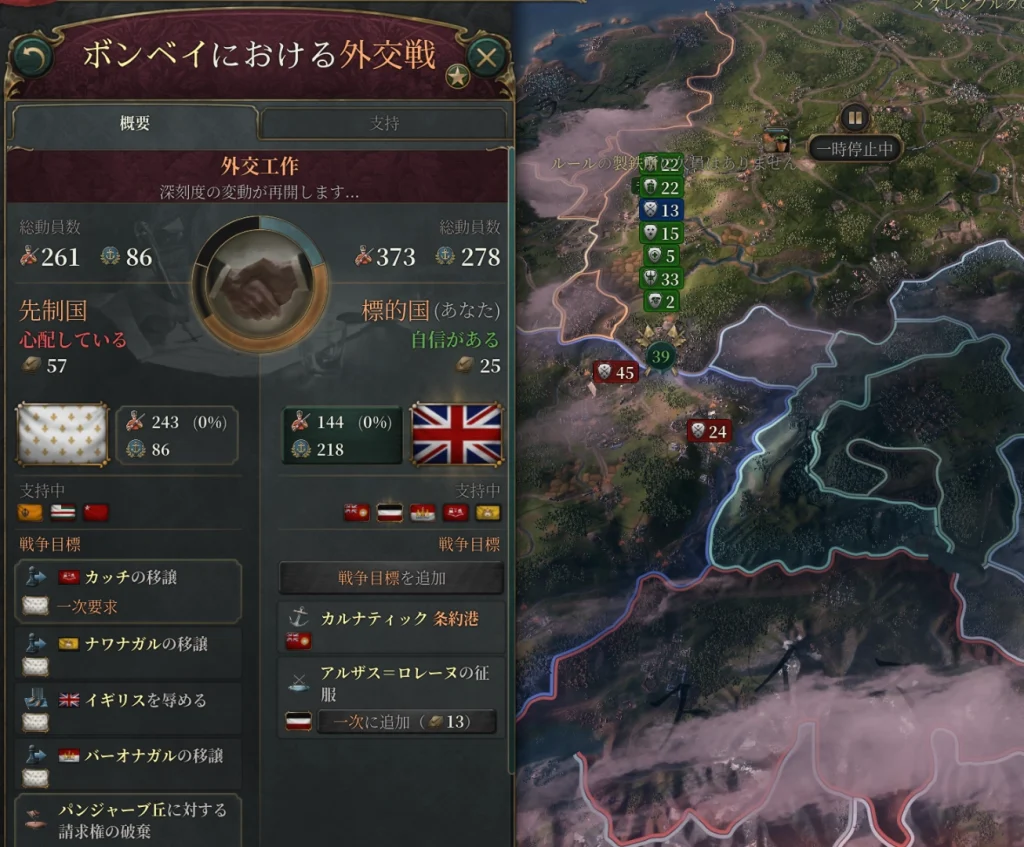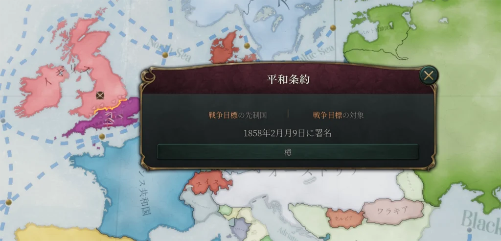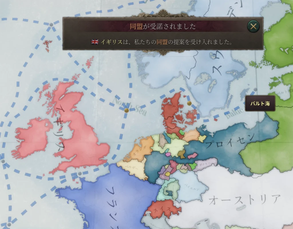 そんなこんなをしていたらイギリスと同盟を結べた。勝ったな風呂入ってくる。
