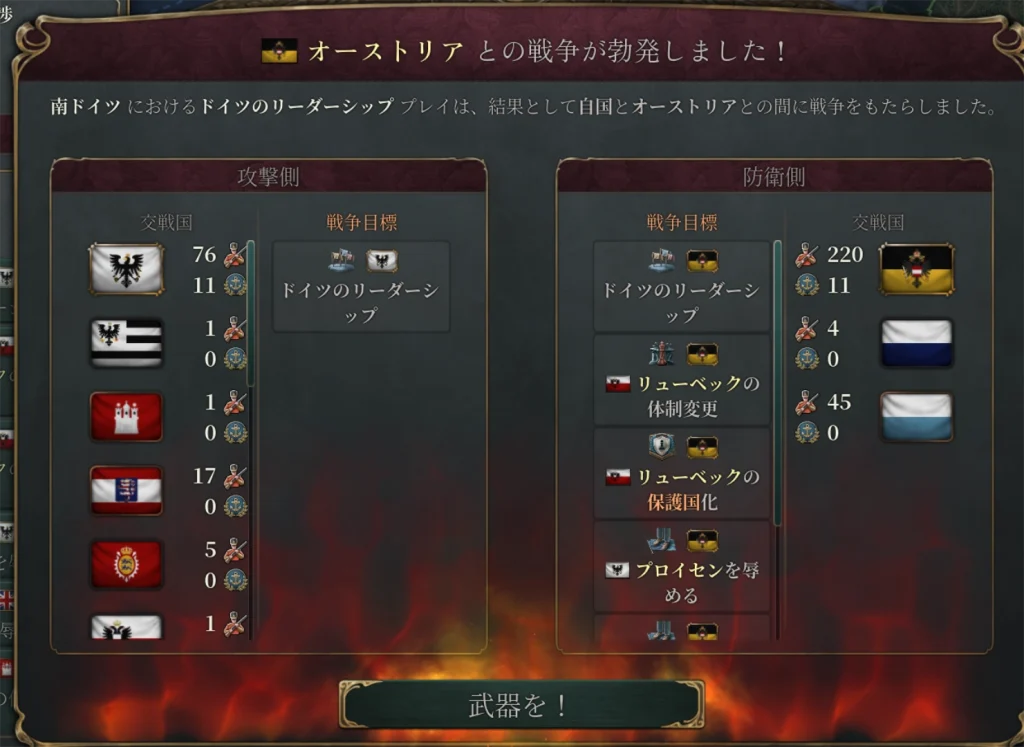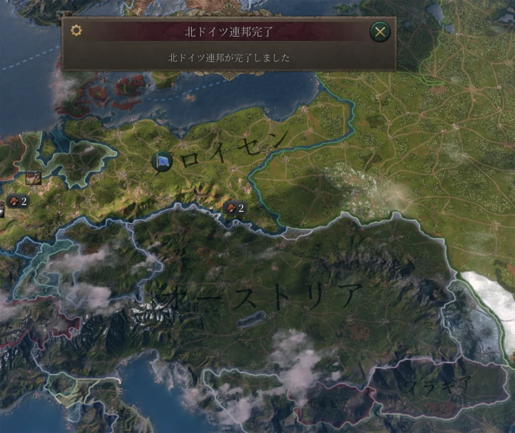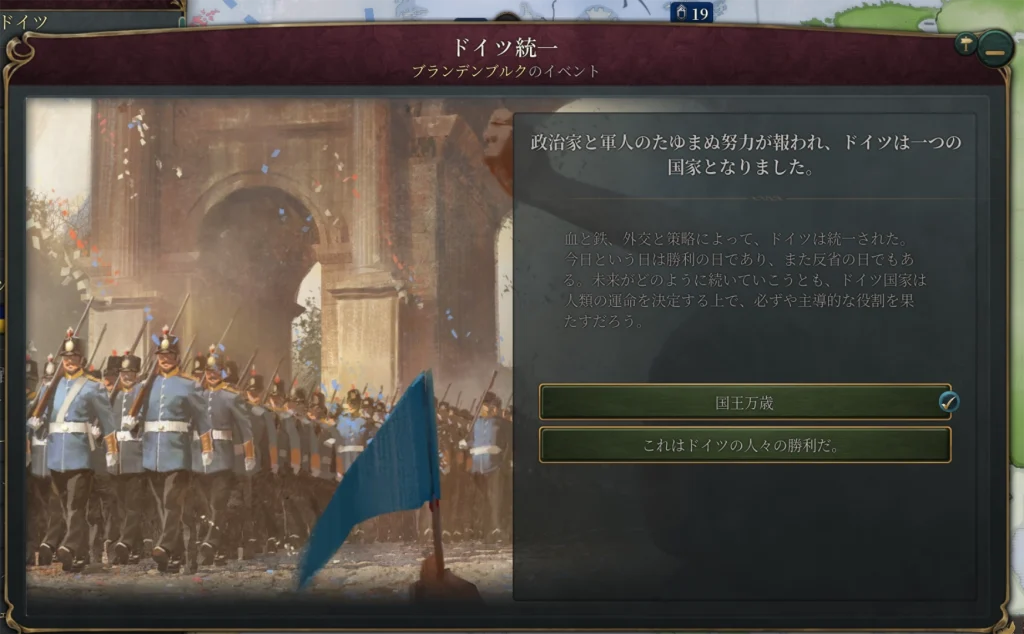 何かバグってるのか白紙講話っぽくなってるけど無事勝ったってことでドイツ統一のリーダーシップを獲得した。