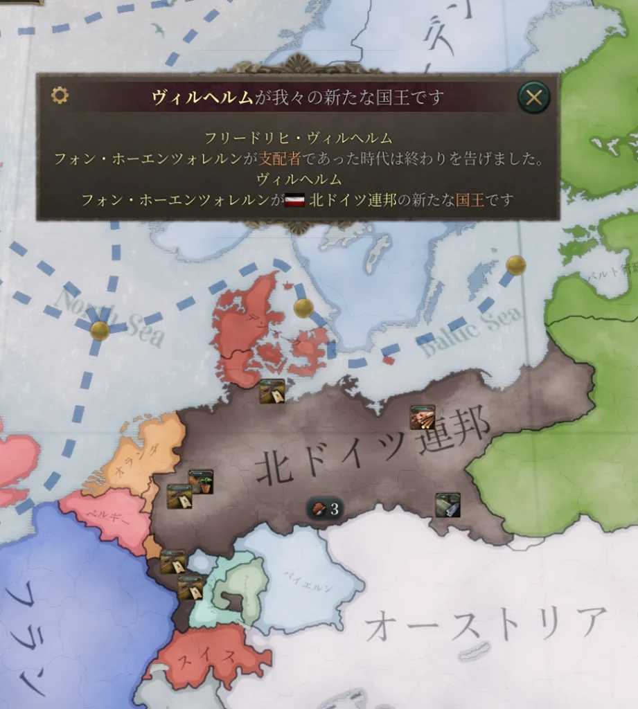 北ドイツ連邦と言ってもまだ併合されてない謎の小国が残ってるからあんま北ドイツって印象ないよな。プロイセンってだけな印象。