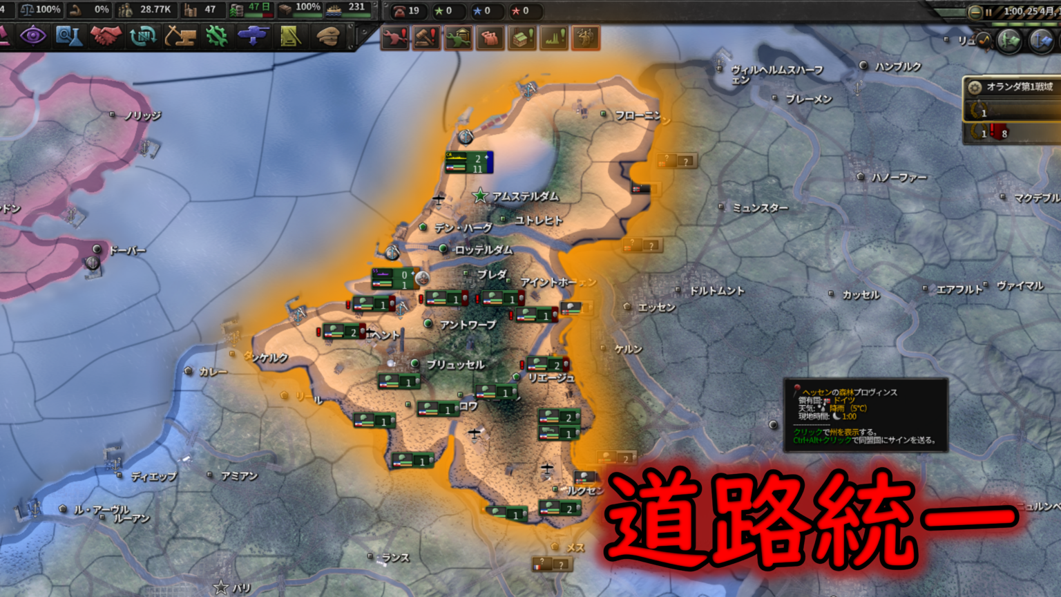 最初は純粋にオランダでやろうとしたんだけど、ベルギーから逆迂回されて落とされた。だからベルギーもひっくるめて耐えていこうってことで、ベネルクス統一をまず目指す。