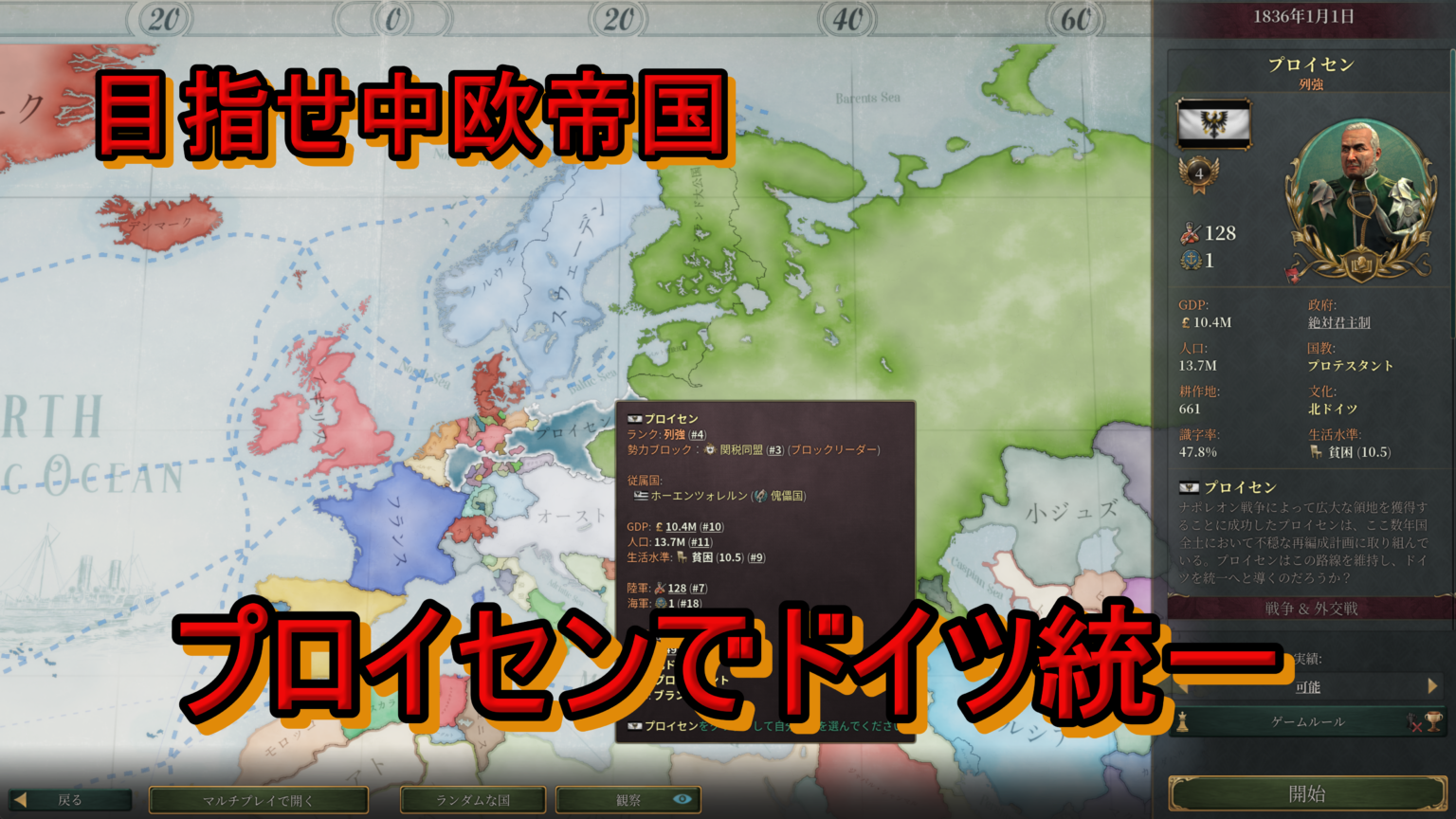 で、そのvic3でプロイセンをプレイしていく。まだ全然やってないからかなり立ち回り的には悪そう。まぁそんなことは置いといてやっていく。