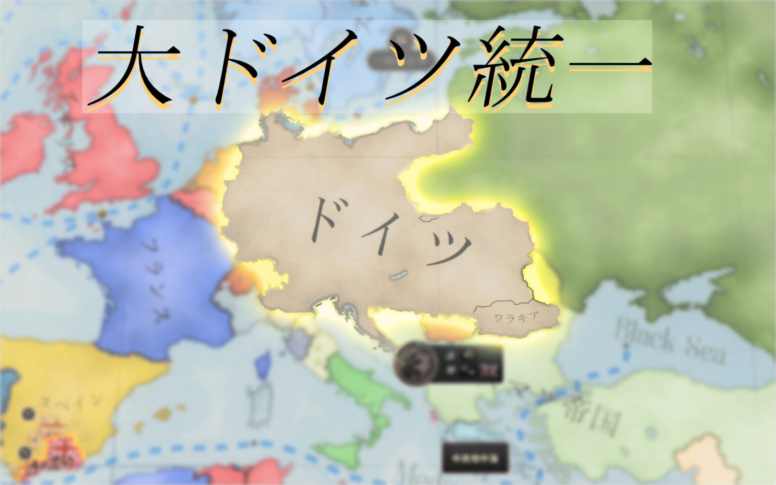 前回は内戦が起きちゃってもうどうしようもねぇってことでやり直したけど、今回はタイトル通りドイツ統一に成功した。しかもオーストリアも含めての統一、つまり大ドイツでの統一に成功したからこれから書いていく。